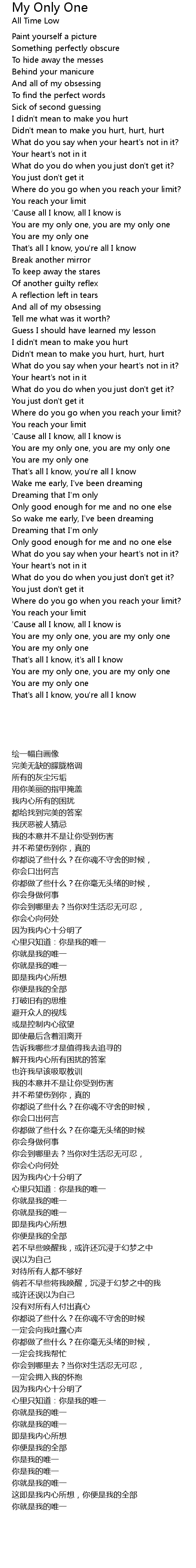 You are my only one, you are my only one |