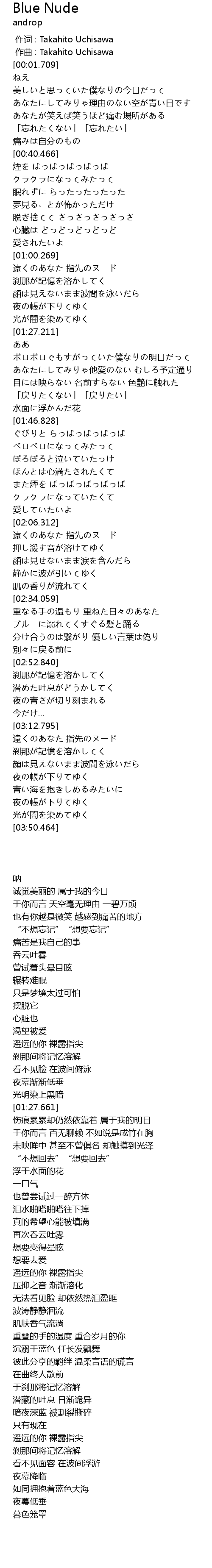 | [03:14.248] | 遠くのあなた 指先のヌード |