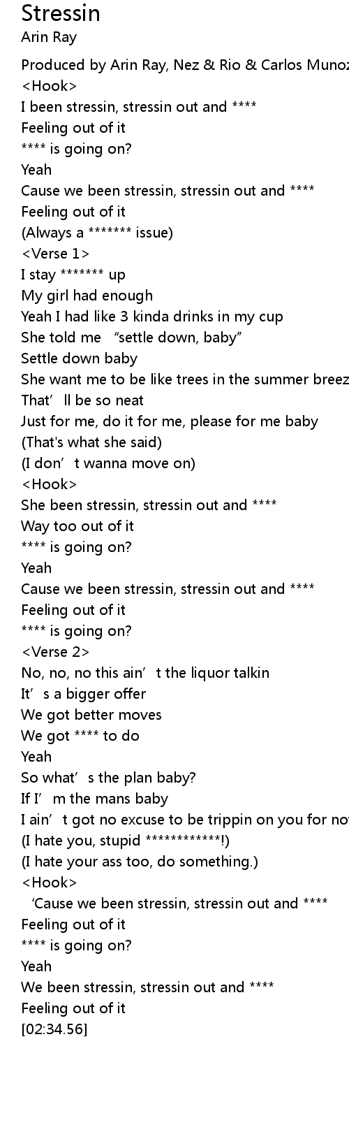 | [02:08.47] | ‘Cause we been stressin, stressin out and **** |