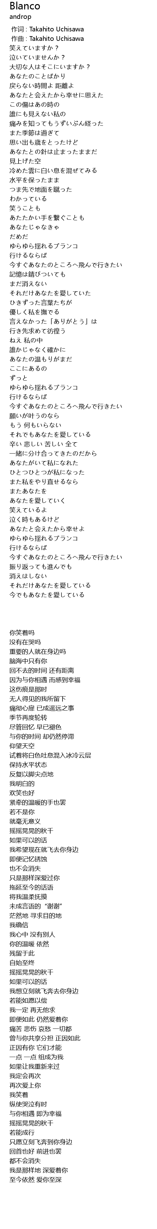 | [00:00.000] | 作词 : Takahito Uchisawa |