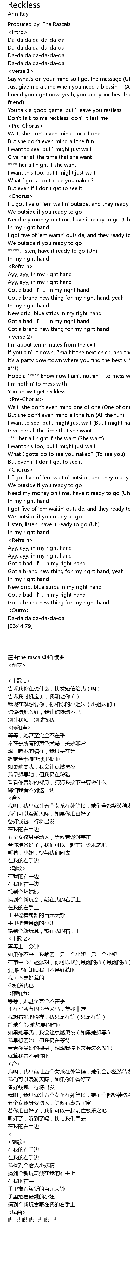 | [00:31.38] | Don' t talk to me reckless, don' t test me |