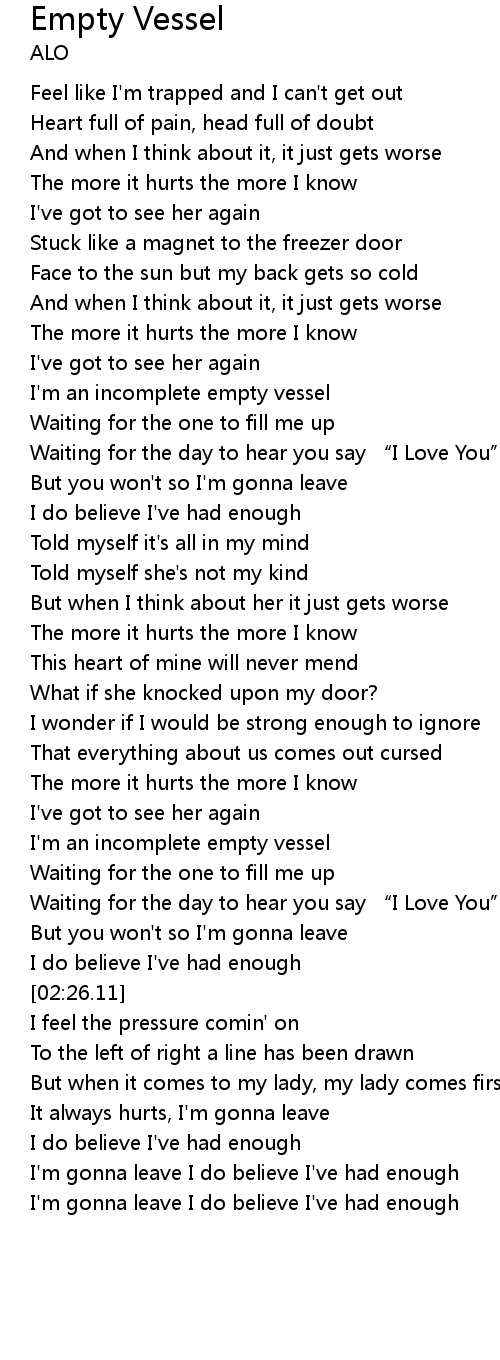 | [00:56.13] | I'm an incomplete empty vessel |