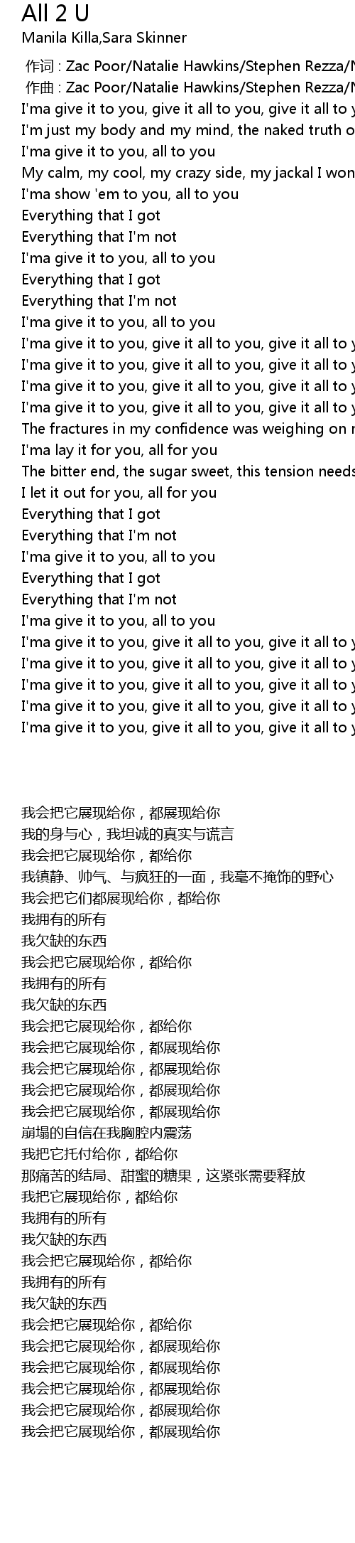 | [01:46.88] | I' ma give it to you, give it all to you, give it all to you |