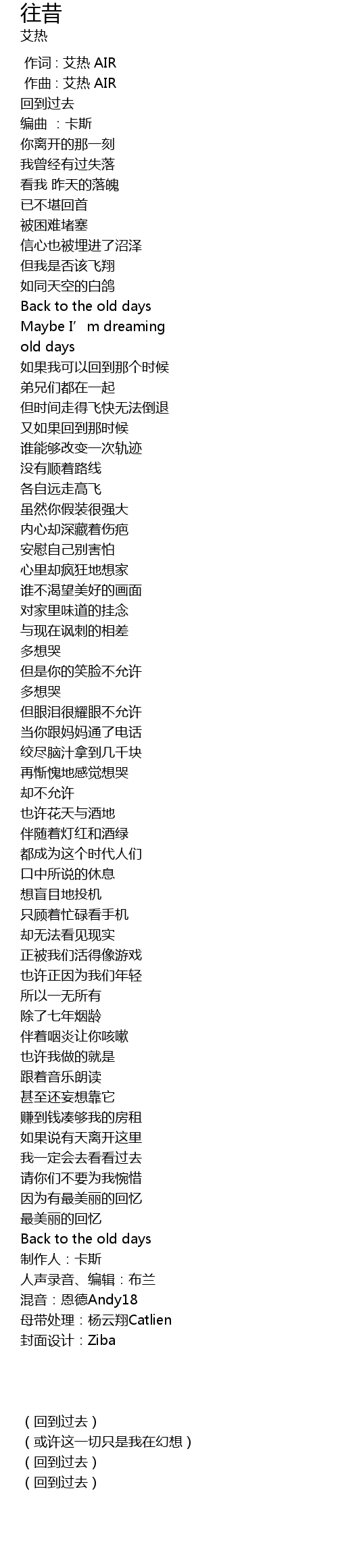 | [00:00.000] | 作词 : 艾热 AIR |