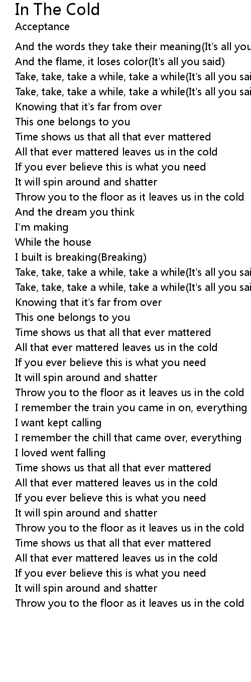 In The Cold 歌词