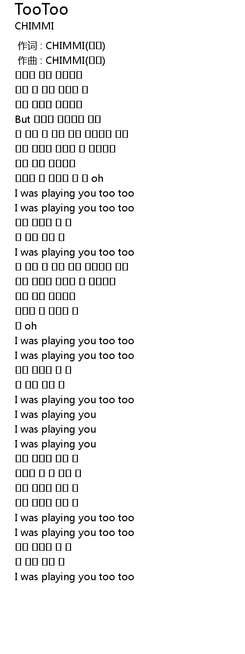 | [00:45.20] | I was playing you too too |