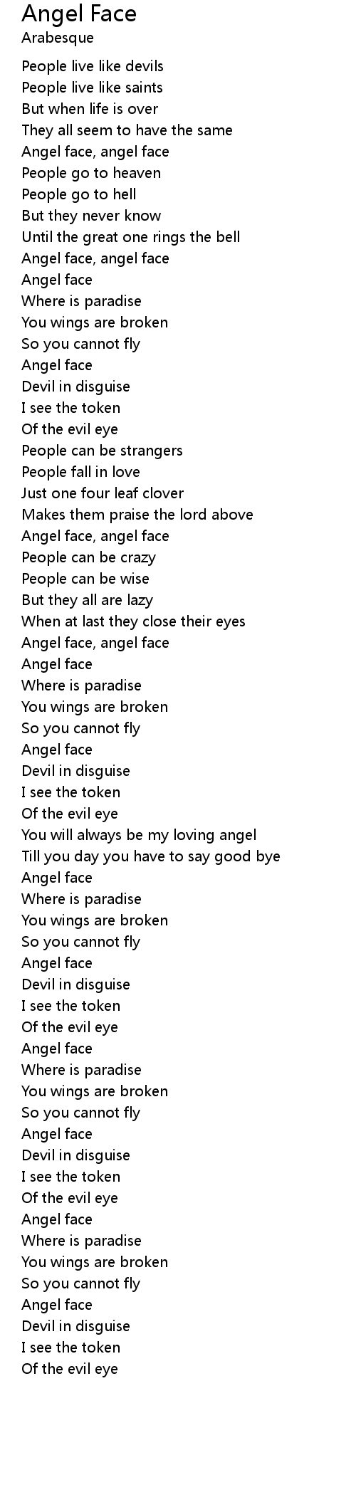 Angel face, angel face |