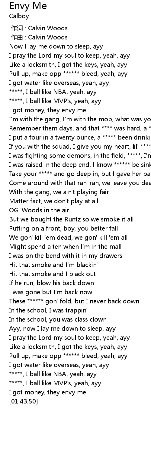 | [01:40.14] | I got money, they envy me |