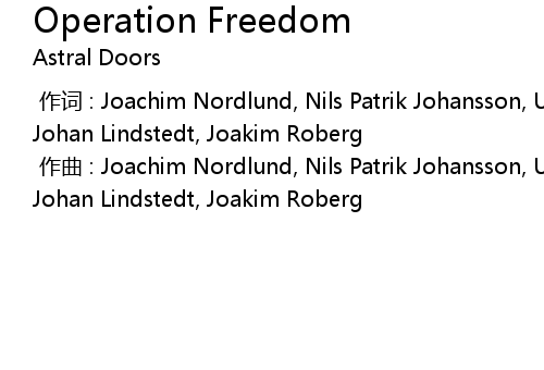 | [00:00.000] | zuò cí : Joachim Nordlund, Nils Patrik Johansson, Ulf Lagerstr m, Johan Lindstedt, Joakim Roberg |