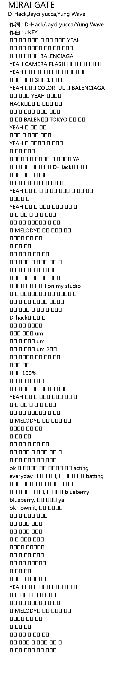 | [00:00.000] | 作词 : D-Hack/Jayci yucca/Yung Wave |