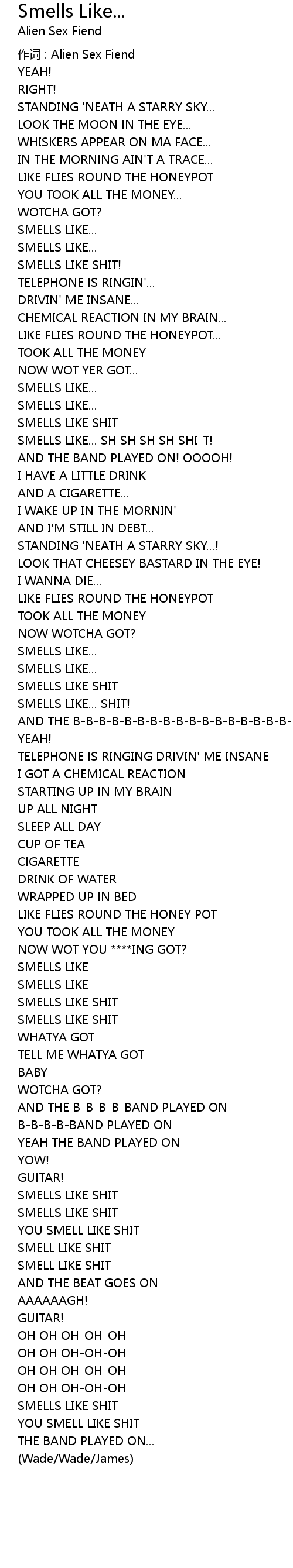 | 作词 : Alien Sex Fiend | |