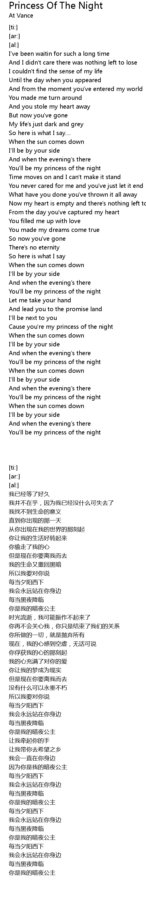 Cause you're my princess of the night |