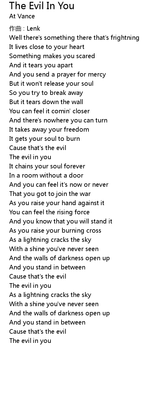 | 歌曲 | The Evil In You |