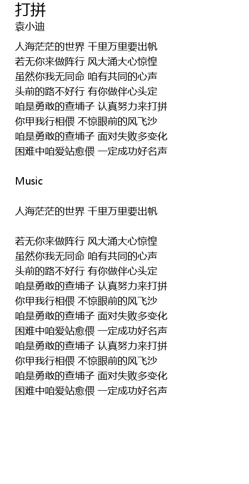 | 咱是勇敢的查埔子 认真努力来打拼 | |