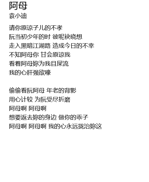 | 阿母啊 阿母啊 我的心永远拢治妳这 |