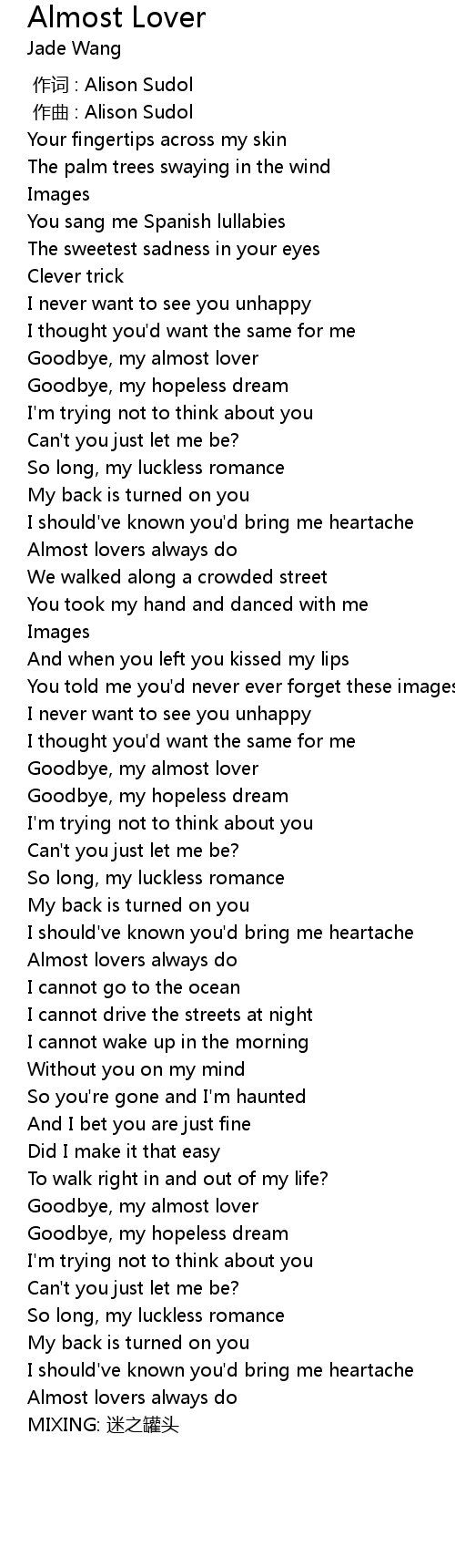 | [03:46.84] | Goodbye, my almost lover |