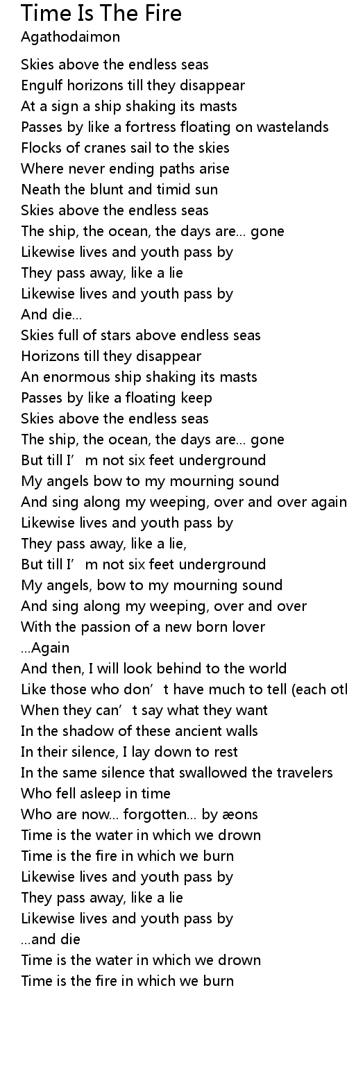 | 歌曲 | Time Is The Fire |