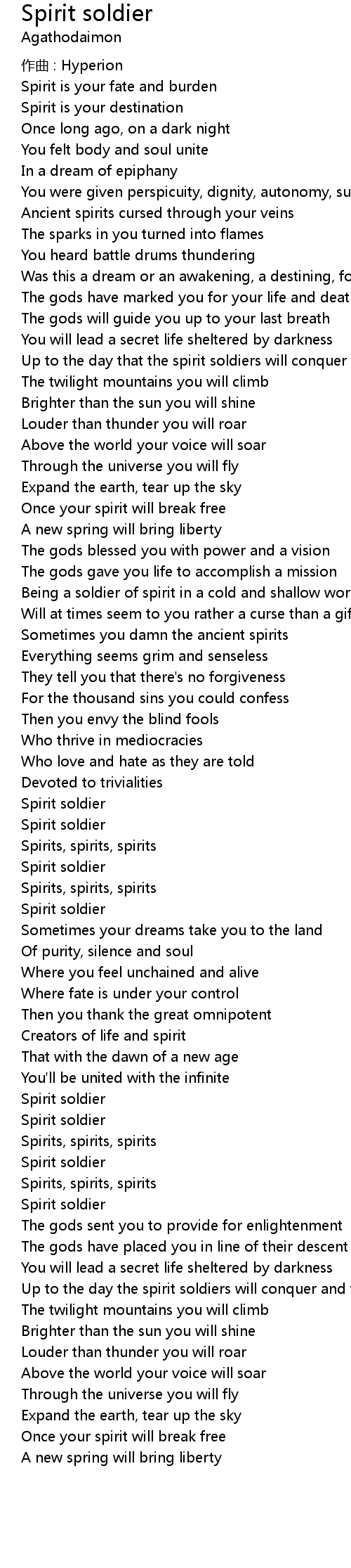 | Up to the day the spirit soldiers will conquer and then | |