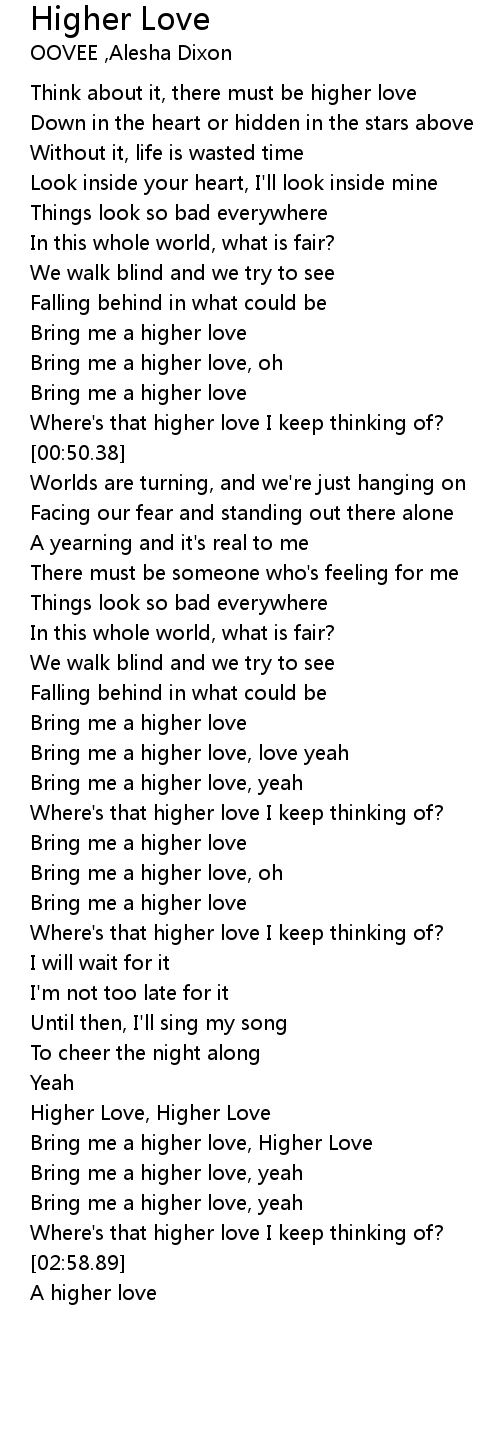 | [02:53.68] | Where's that higher love I keep thinking of? |