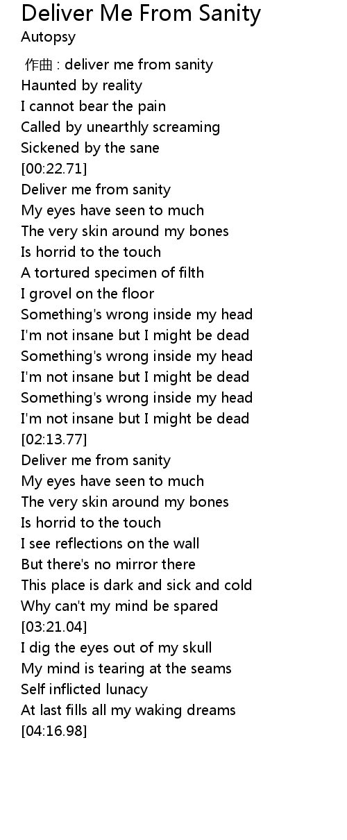 | [00:32.21] | Deliver me from sanity |