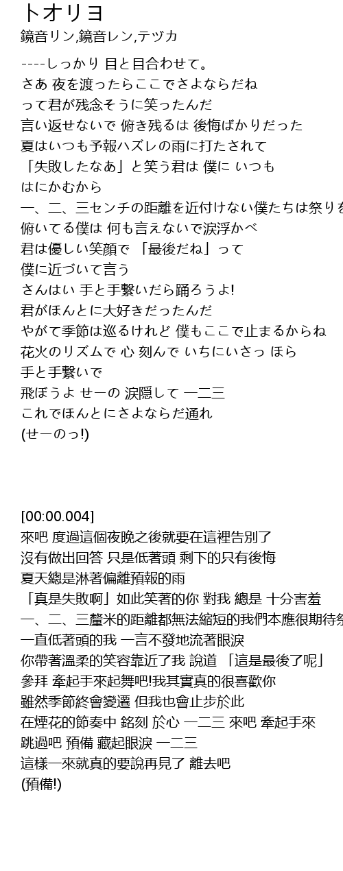 | [00:32.757] | 一、二、三センチの距離を近付けない僕たちは祭りを楽しみにしてたはずだよね |