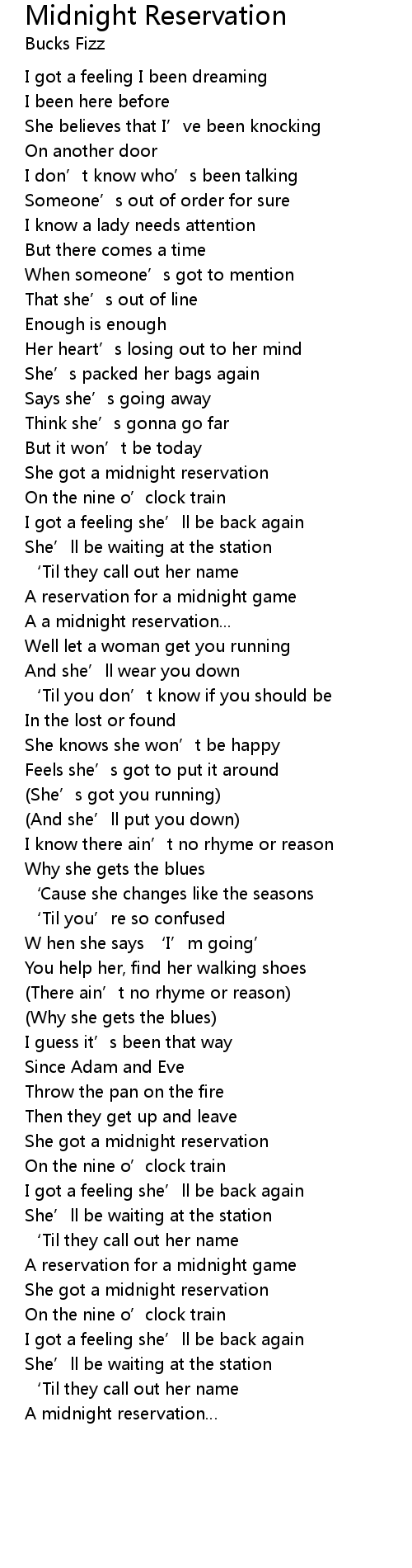 | She got a midnight reservation | |