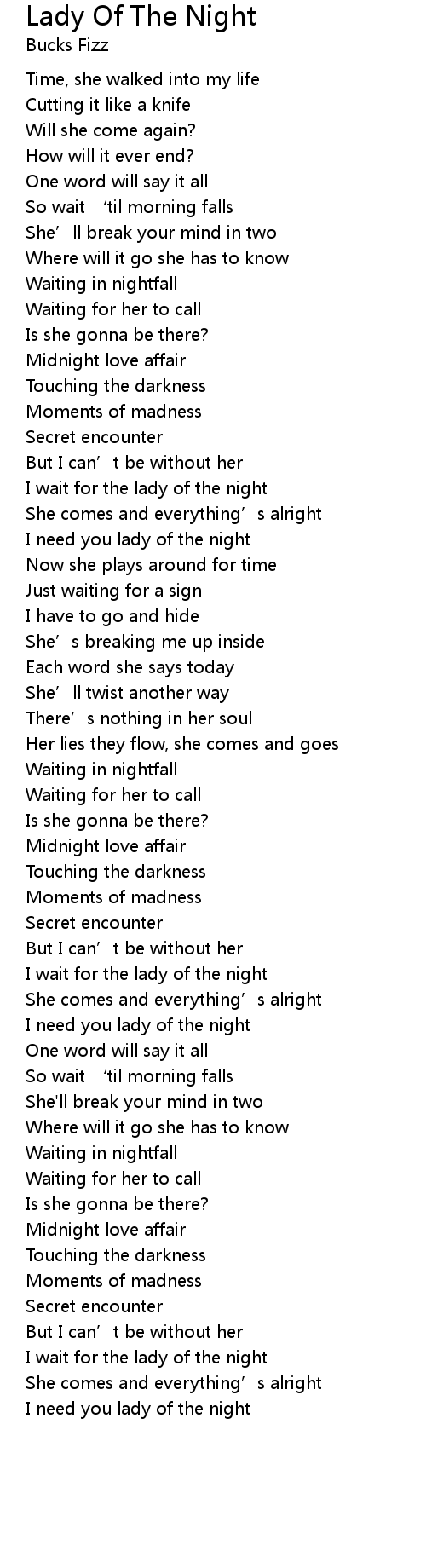 | I wait for the lady of the night | |