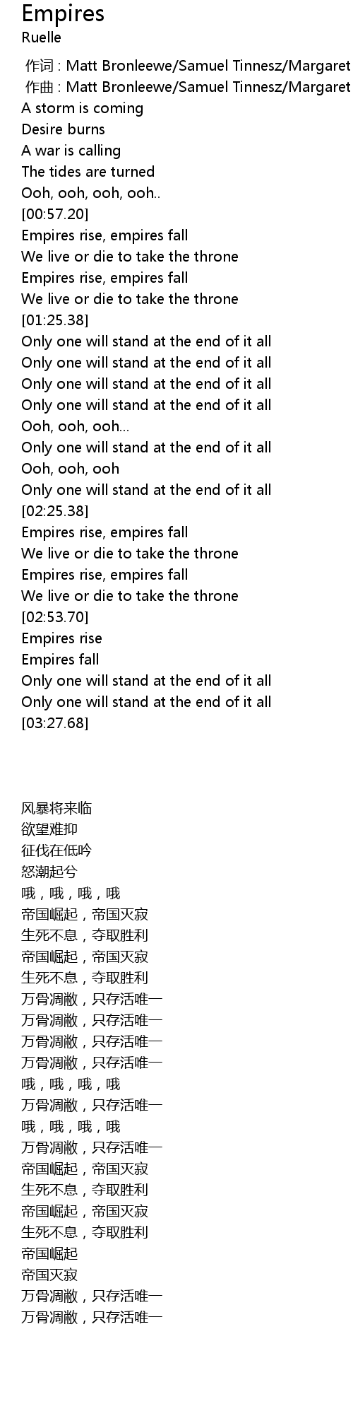 | [00:57.23] | Empires rise, empires fall |
