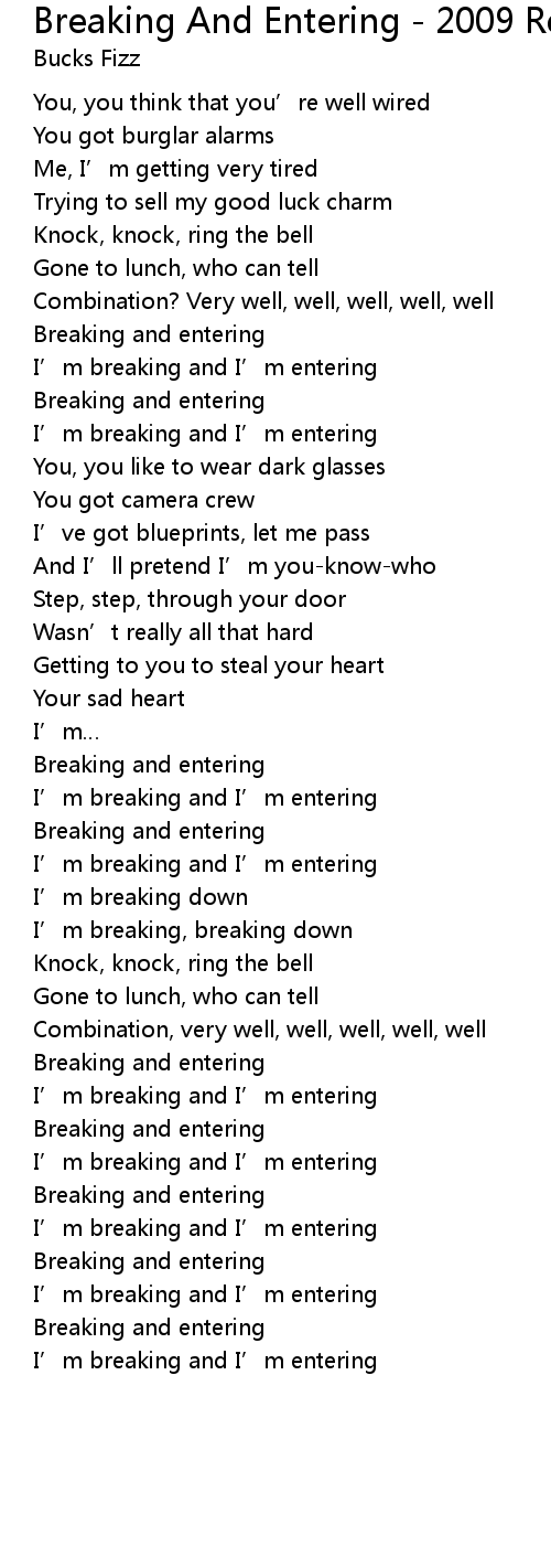 | 歌曲 | Breaking And Entering - 2009 Remaster |