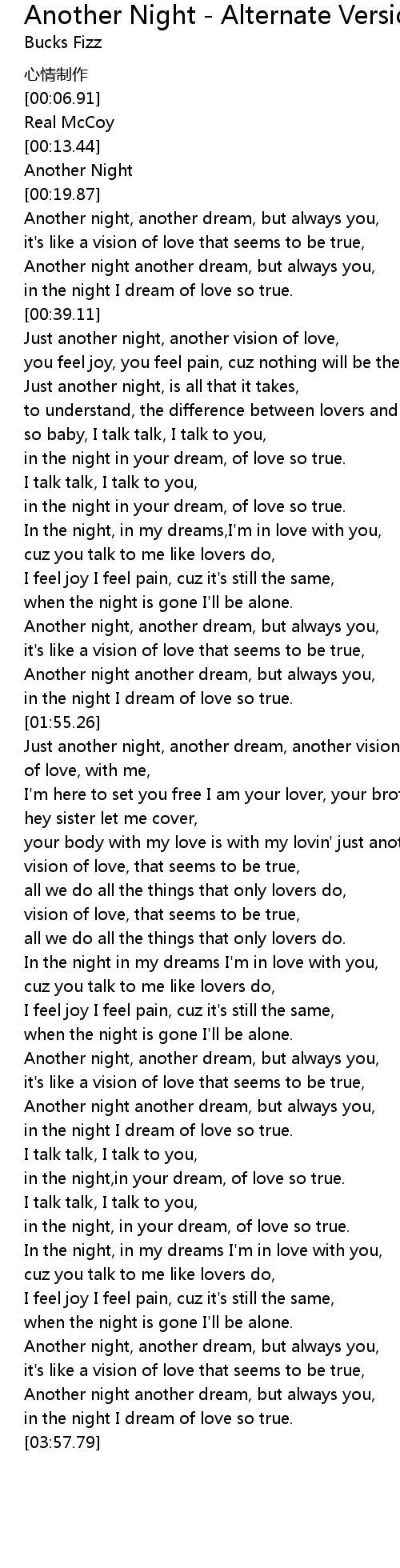 | [03:22.74] | in the night, in your dream, of love so true. |