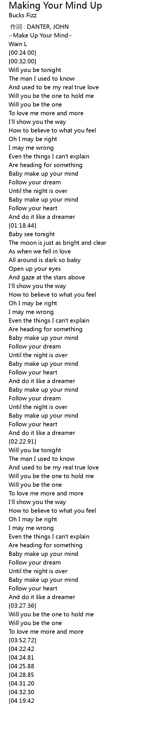 | [04:35.26][04:22.42][04:06.76] | Baby make up your mind |