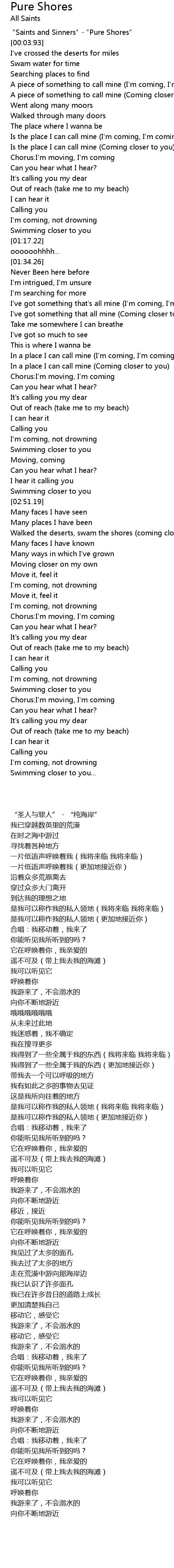 [00:00.80] "Saints and Sinners" - "Pure Shores"