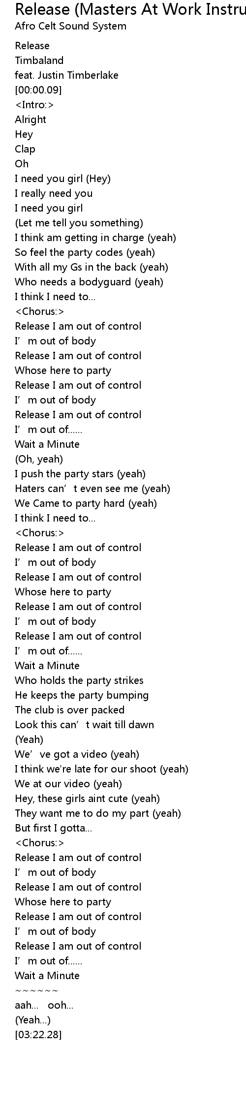 | 歌曲 | Release (Masters At Work Instrumental) |