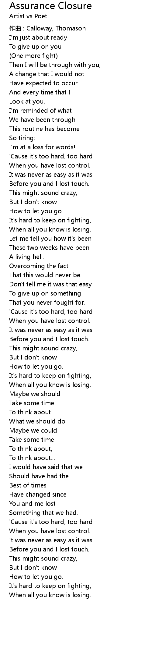 | 歌曲 | Assurance Closure |