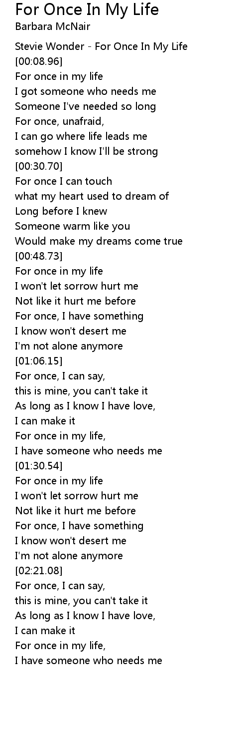 For once in my life, |