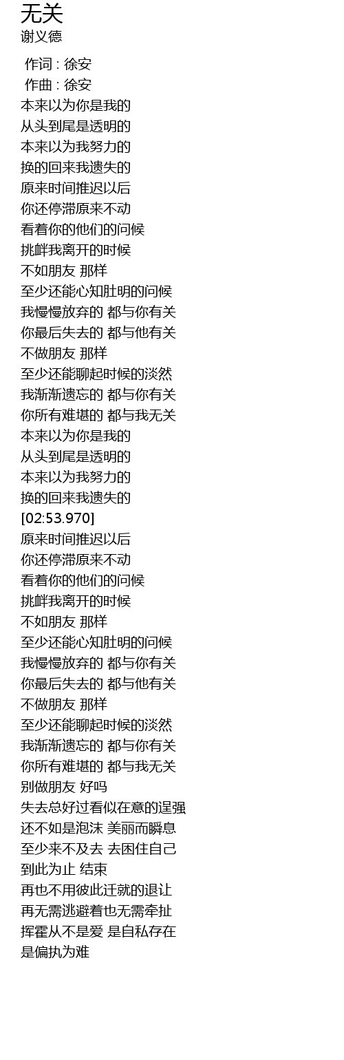 | [00:00.000] | 作词 : 徐安 |