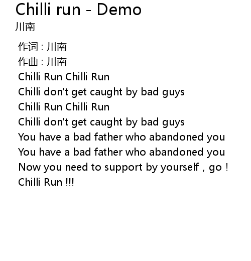 | [00:21.811] | Chilli don' t get caught by bad guys |