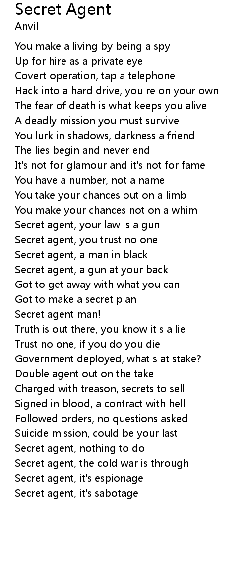 Secret agent, it's espionage |