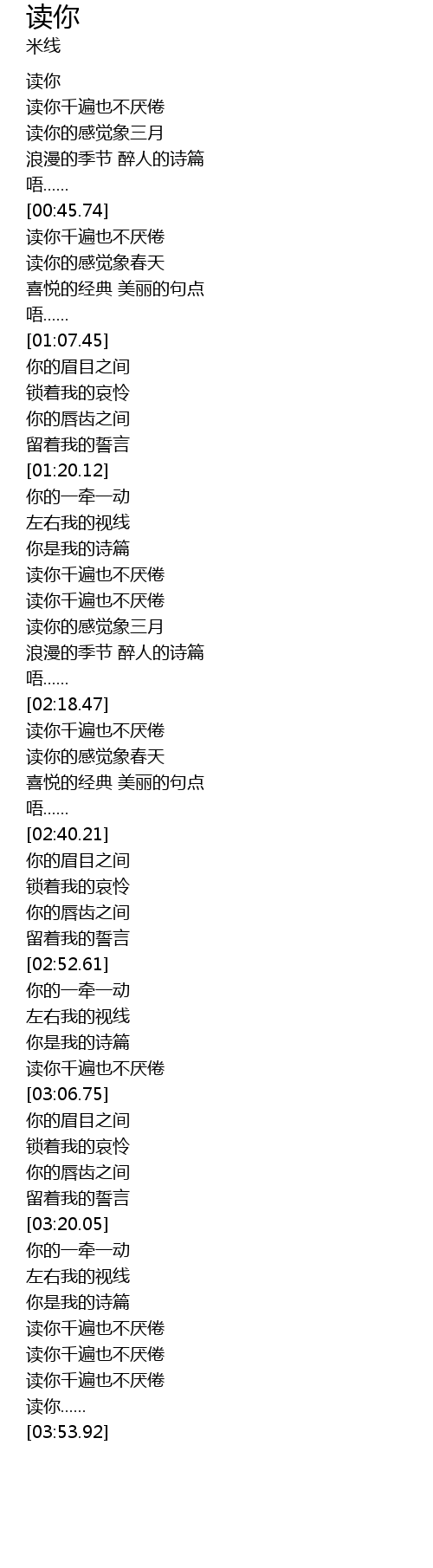 | [03:45.69] | 读你...... |