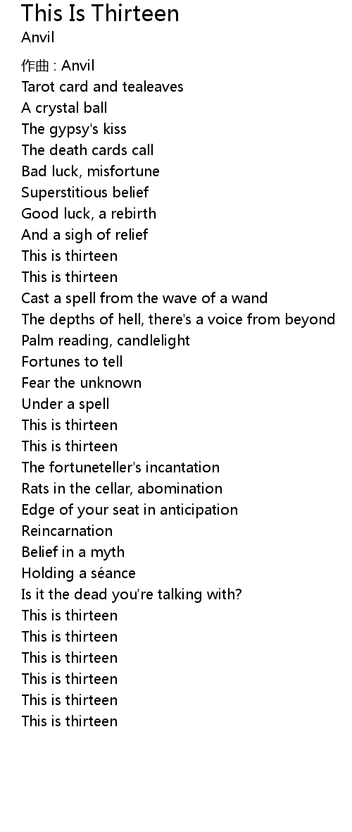 | 歌曲 | This Is Thirteen |