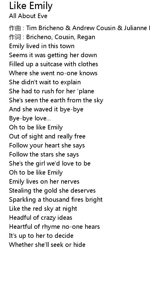 | 歌曲 | Like Emily |