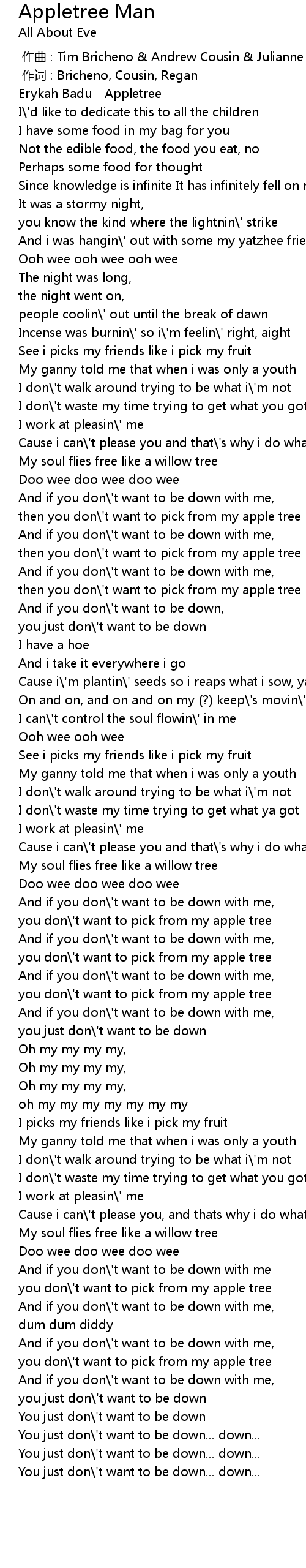 | [00:00.00] | Erykah Badu - Appletree |