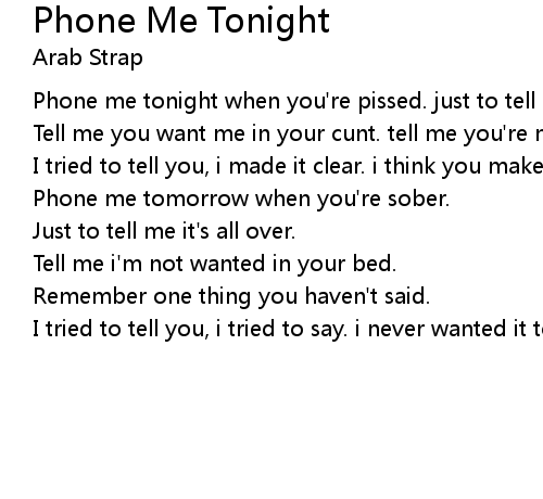 | Phone me tonight when you're pissed. just to tell me that i'm missed. | |