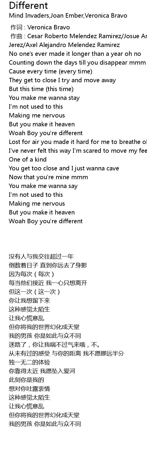 | [01:03.93] | Woah Boy you're different |