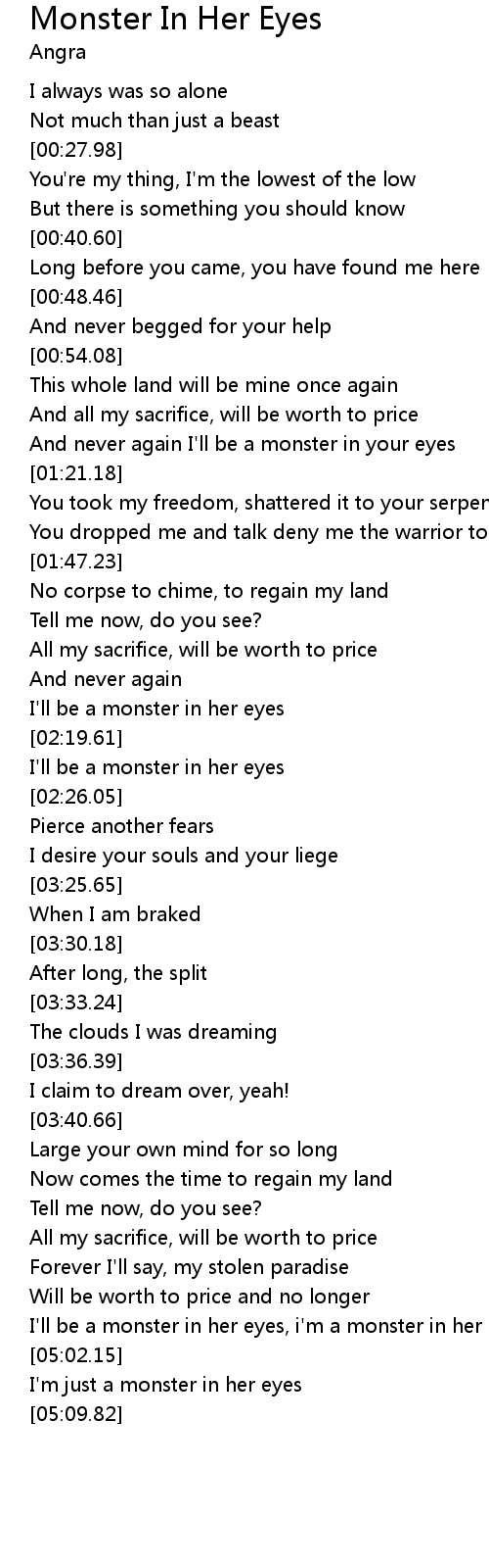 | [04:51.57] | I'll be a monster in her eyes, i'm a monster in her eyes |