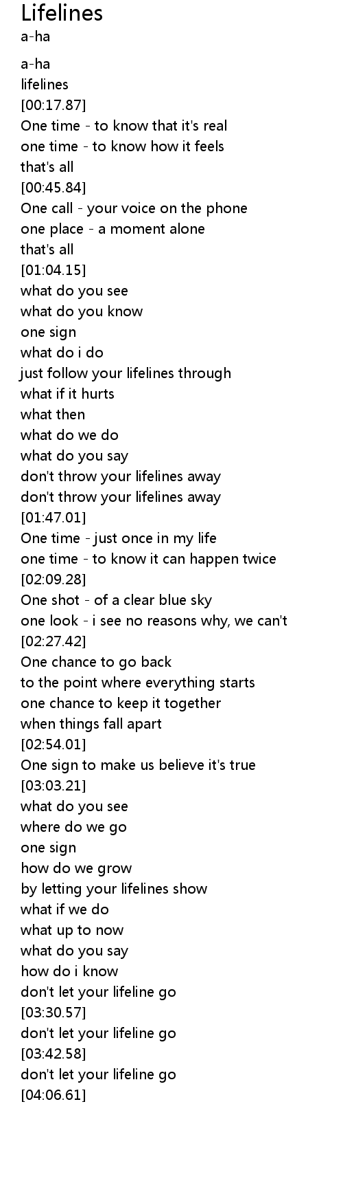 | [00:13.38] | lifelines |