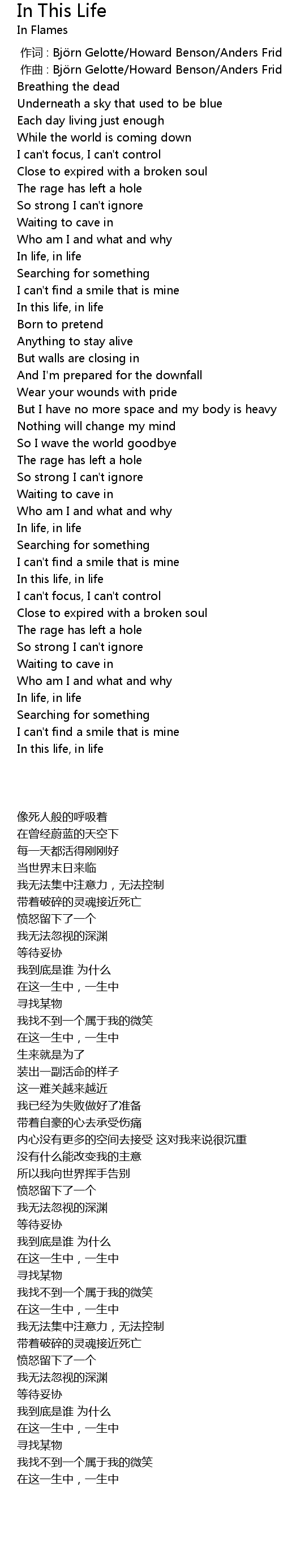 | [00:00.000] | 作词 : Björn Gelotte/Howard Benson/Anders Fridén |