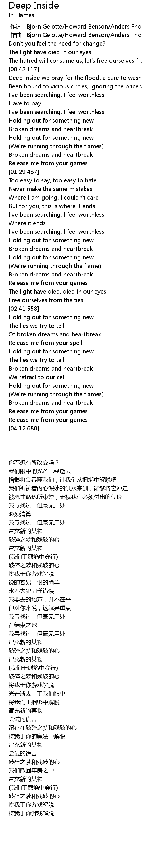 | [00:00.000] | 作词 : Björn Gelotte/Howard Benson/Anders Fridén |