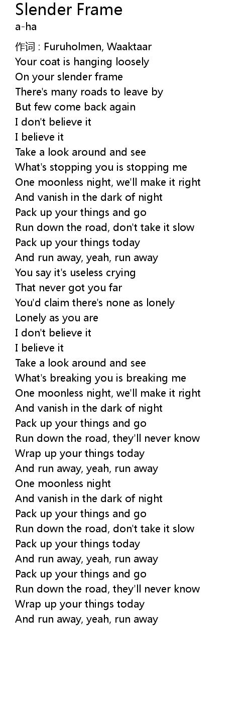 | 作词 : Furuholmen, Waaktaar | |