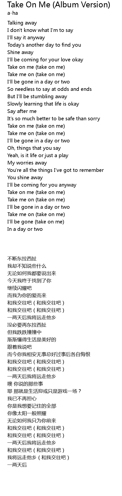 Take On Me (Album Version) 歌词